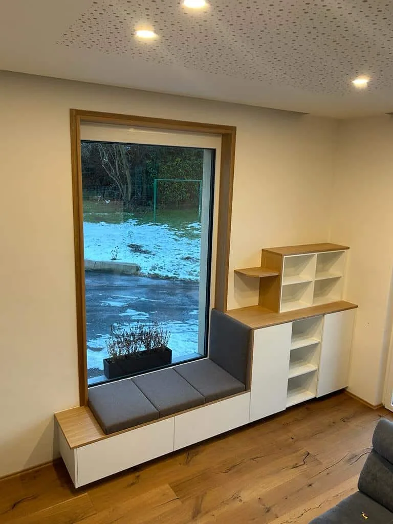 - Einzigartige Gestaltungsmöglichkeiten: Jede unserer Fensterbänke wird individuell nach Maß und nach Ihren Bedürfnissen gefertigt. Sie haben die Möglichkeit, die Holzart, die Oberflächenbehandlung und das Design der Fensterbank auszuwählen, um sicherzustellen, dass sie perfekt zu Ihrem Zuhause passt. Und das Beste: Sitzfenster sind nicht nur bei Neubauten möglich, auch bei bestehenden Gebäuden kann diese nachträglich gestaltet werden.