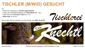 Wir suchen zum sofortigen Eintritt eine neue Kollegin oder einen neuen Kollegen für unsere Tischlerei in Dornegg.