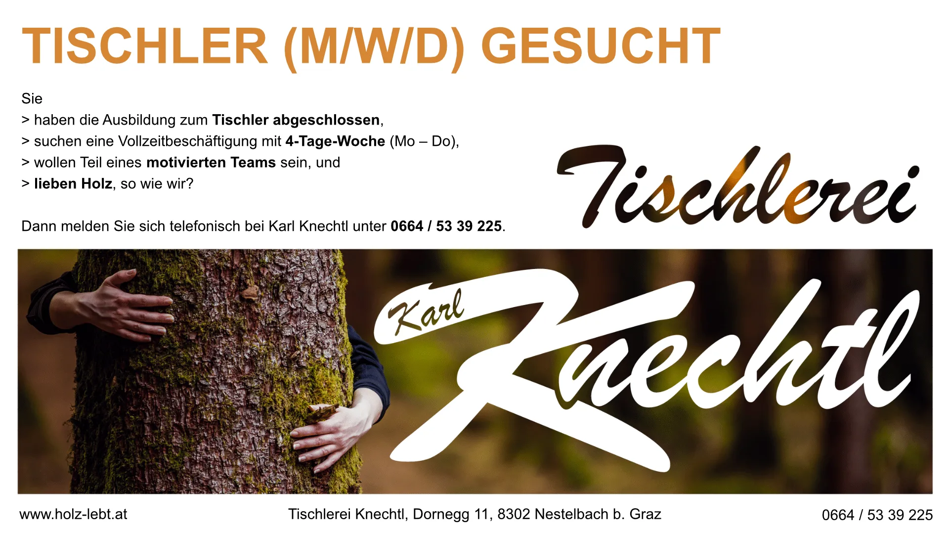 Bei Interesse bitten wir um direkte Kontaktaufnahme mit Karl Knechtl unter der Telefonnummer 0664 / 53 39 225.